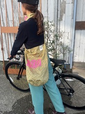 蛍光プリントが目を引く、スタイリッシュなマルシェバッグです!日常使いはもちろん、アウトドアイベントなどで大活躍間違いなしのアイテムです。