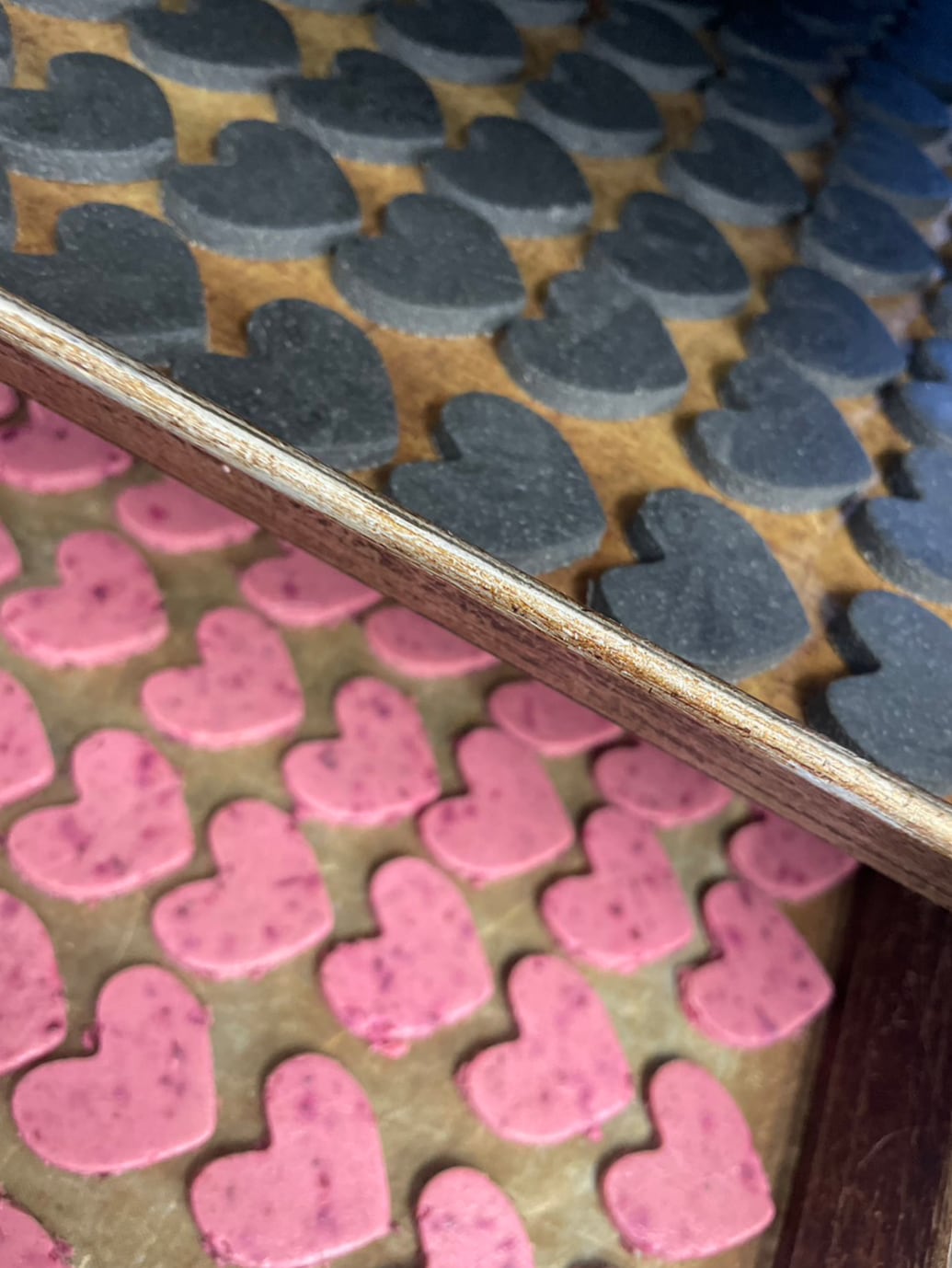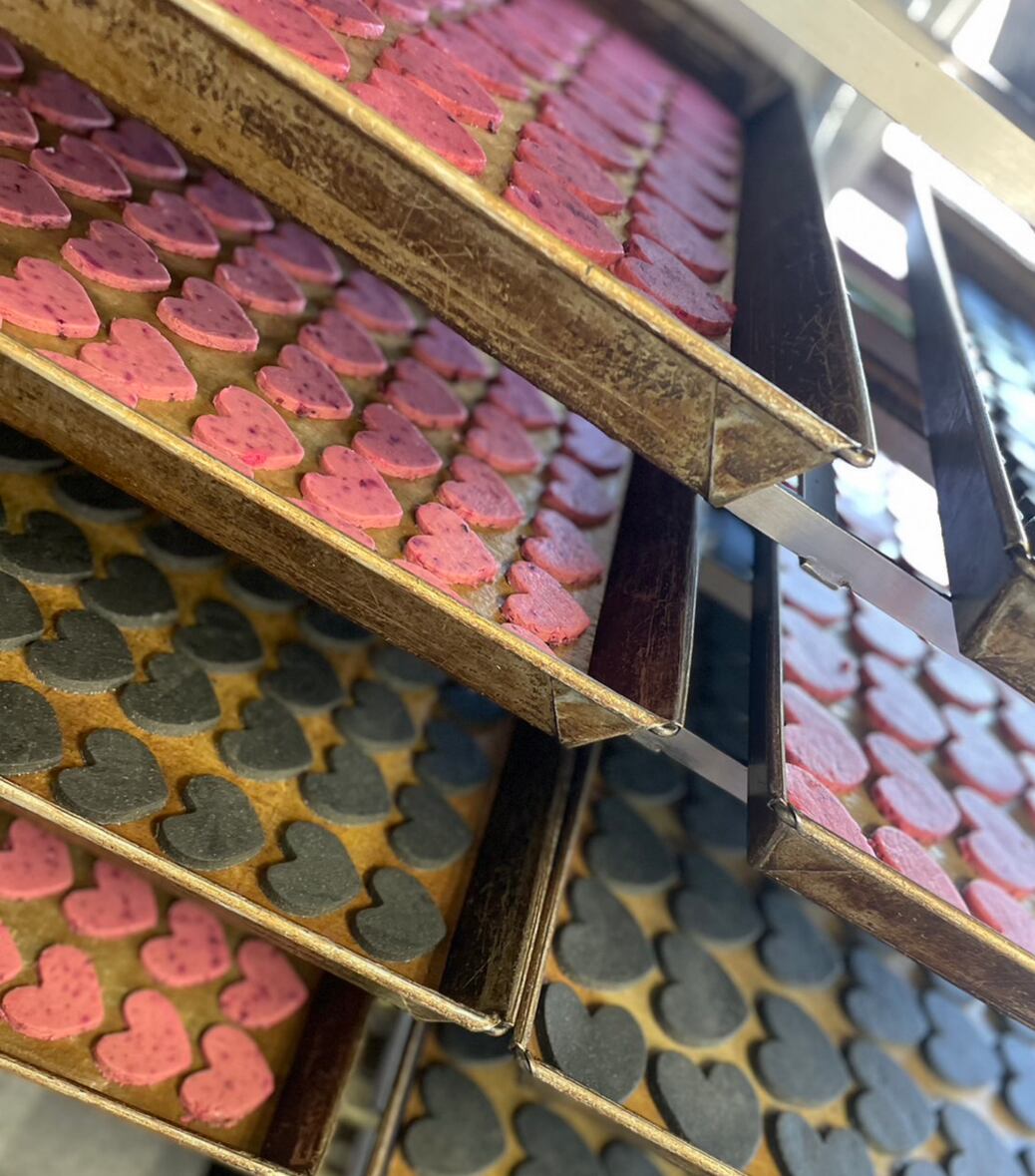 2種類のフレーバーが入っていて、レッドのハートはビーツ、ブラックのハートはチャコール&ジンジャーにてお作りしております。