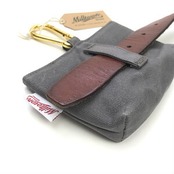 自社独自のワックス加工が施されたキャンバスの生地を使った犬のトリーツ(おやつ)ケース。お散歩時のおやつを携帯したり、またはしつけトレーニング用に、ケース裏側に付属のベルトループを利用してしっかりとトレーナーの腰に固定してご使用いただけます。開け口にマグネットが使用されているので、開け閉めがスムーズにできます。